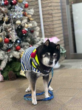 エントランスに飾ってあるツリーの前で今年も記念撮影が出来ましたもしすぐ17歳7ヵ月です···